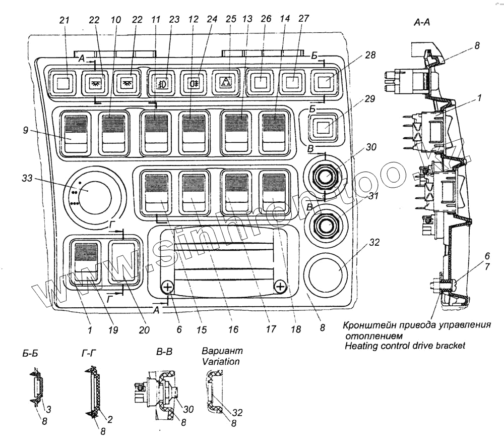 Каталог запасных частей к технике: Камский автозавод 6460 (Евро 4). 6460-3710001-51 Установка выключателей