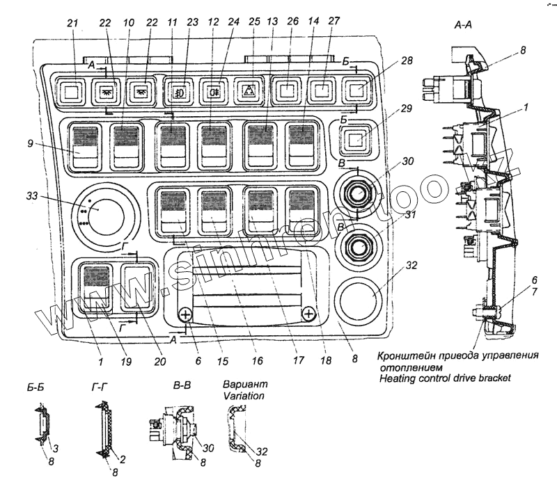 Каталог запасных частей к технике: Камский автозавод 6460 (Евро 4). 65111-3710001-28 Установка выключателей