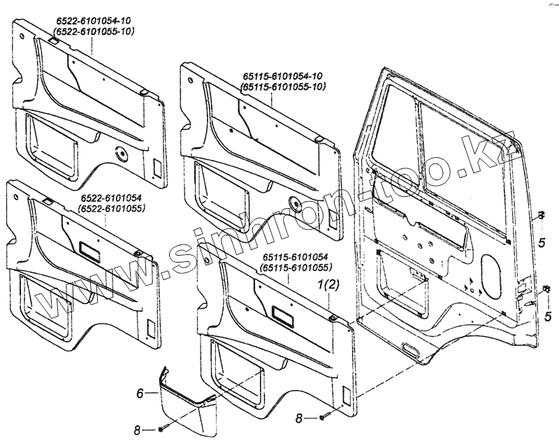 Каталог запасных частей к технике: Камский автозавод 6460 (Евро 4). 65115-6102005 Установка обивок двери