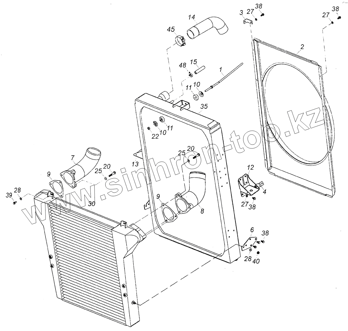 Каталог запасных частей к технике: Камский автозавод 6460 (Евро 4). 6520-1301005-50 Блок охлаждения