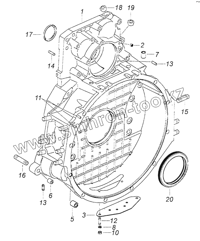 Каталог запасных частей к технике: Камский автозавод 6460 (Евро 4). 740.70-1002310 Картер маховика