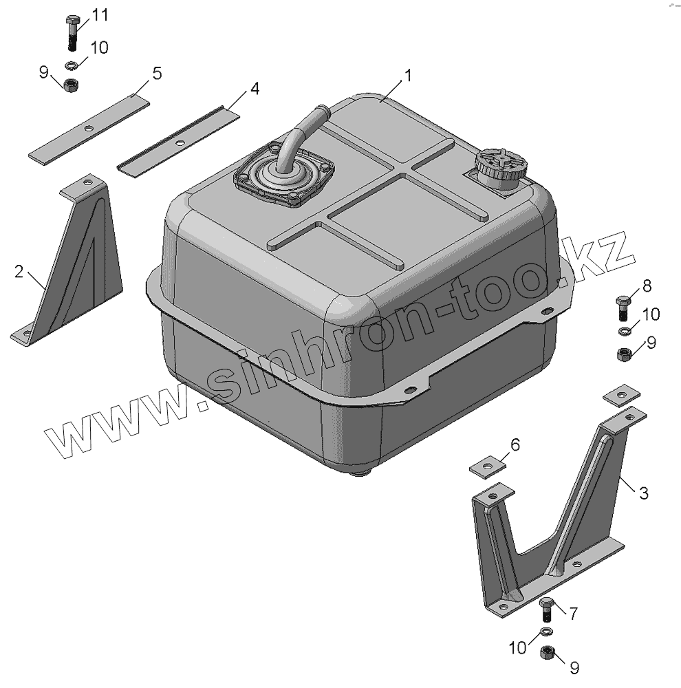 Каталог запасных частей к технике: Камский автозавод 65111. 5511-8608001-10 Установка бака масляного