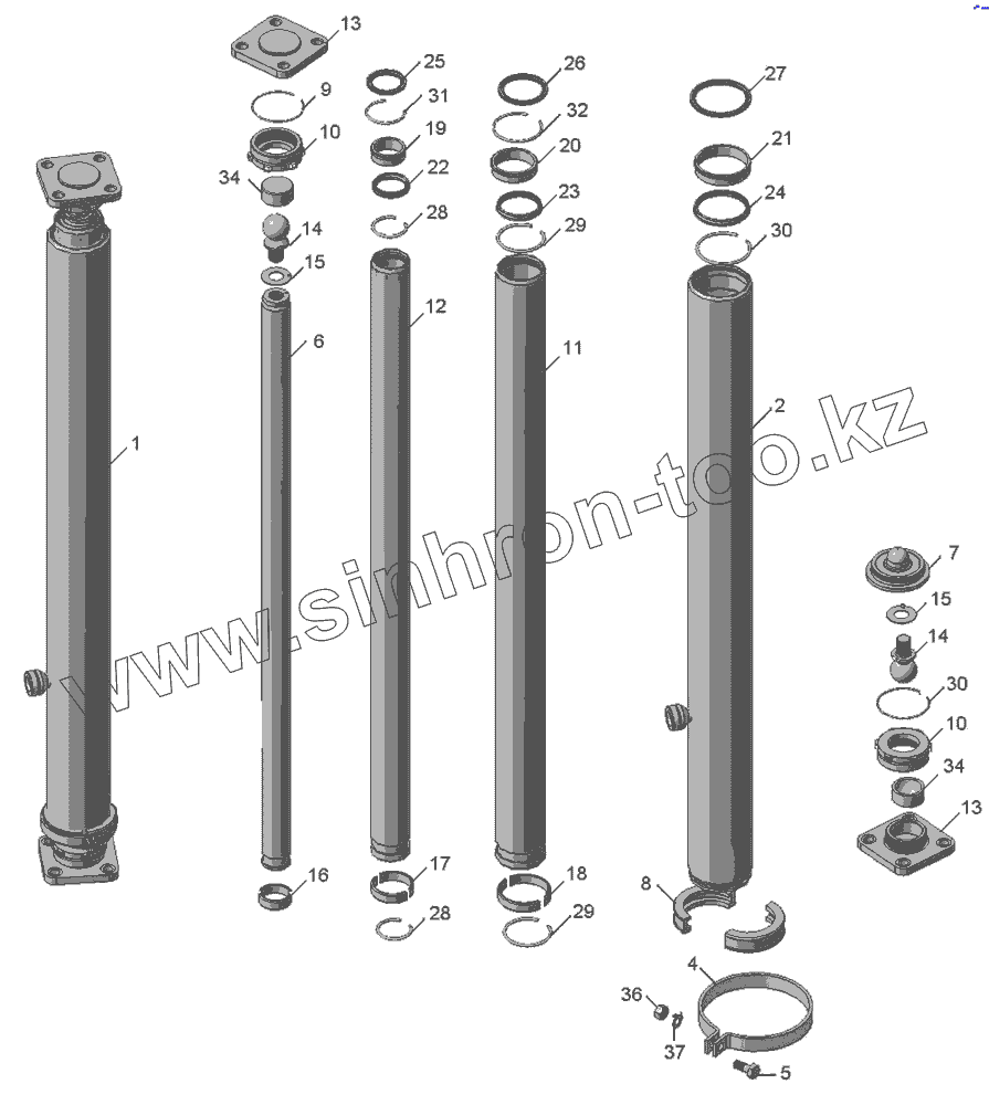 Каталог запасных частей к технике: Камский автозавод 65111. 65111-8603010СБ Гидроцилиндр
