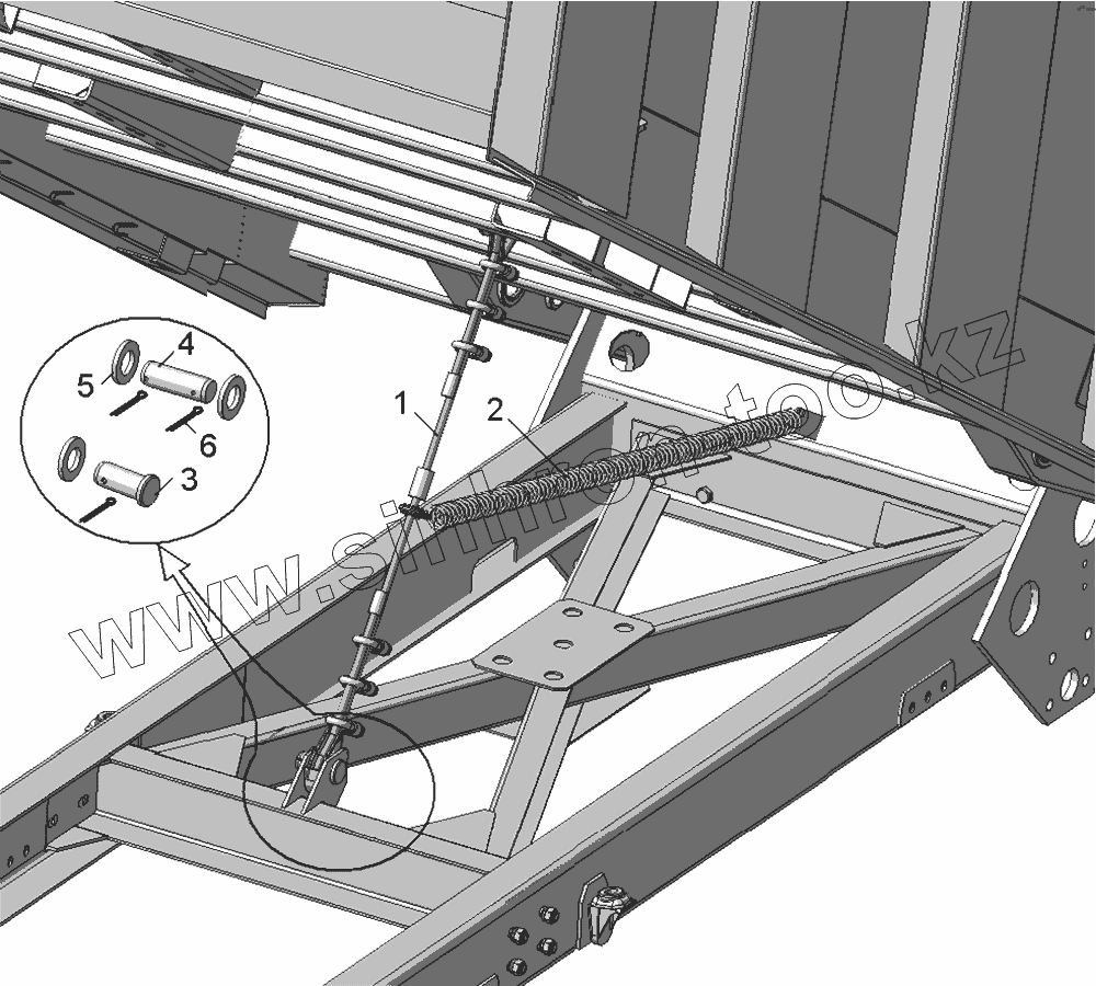 Каталог запасных частей к технике: Камский автозавод 65111. Установка троса ограничения подъема платформы