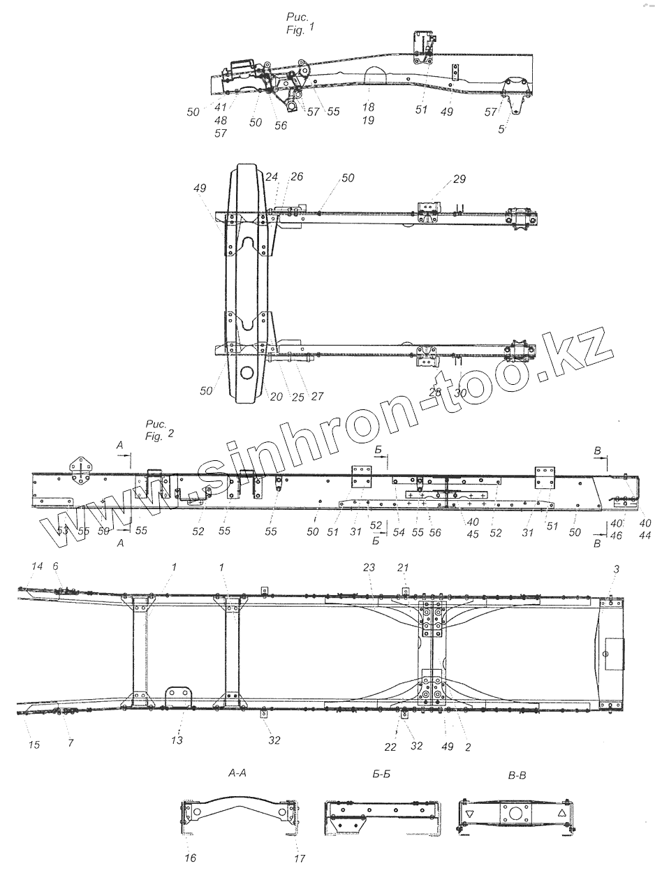 Каталог запасных частей к технике: Камский автозавод 65111 (Евро 4). 65111-2800010-51 Рама