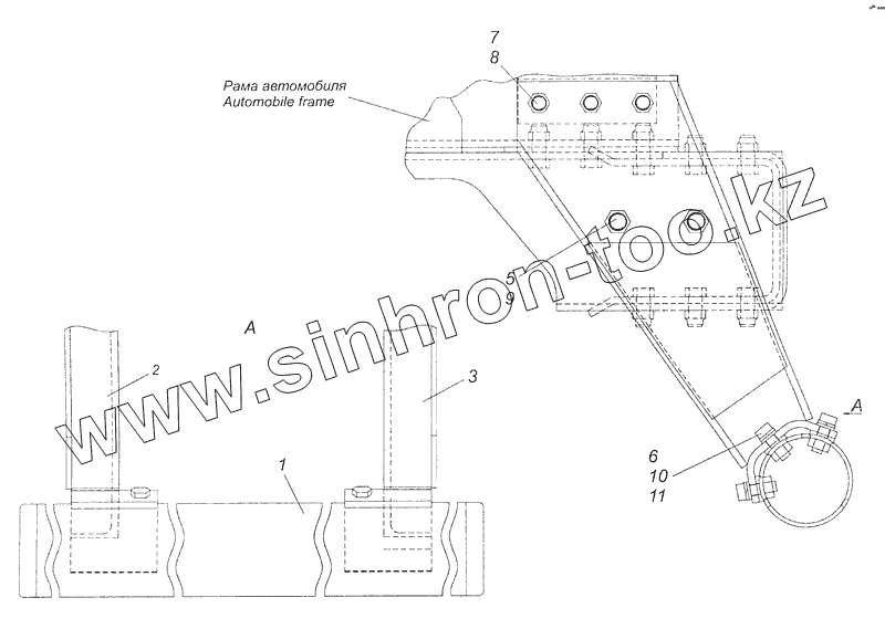 Каталог запасных частей к технике: Камский автозавод 65111 (Евро 4). 65111-2804003 Установка заднего буфера