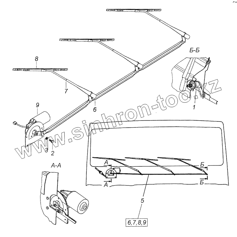 Каталог запасных частей к технике: Камский автозавод 65111 (Евро 4). 6520-5205001 Установка стеклоочистителя