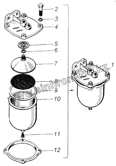Каталог запасных частей к технике: Камский автозавод 65115. Фильтр грубой очистки топлива в сборе