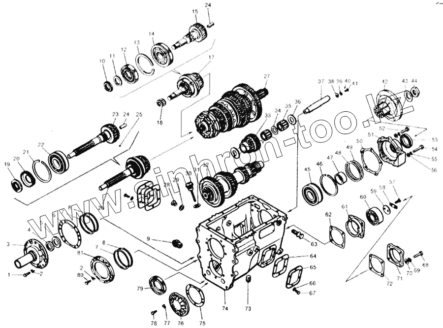 Каталог запасных частей к технике: Камский автозавод 65115. Картер коробки передач с валами