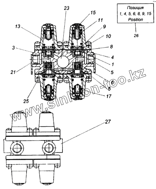 Каталог запасных частей к технике: Камский автозавод 65115. Клапан защитный четырехконтурный