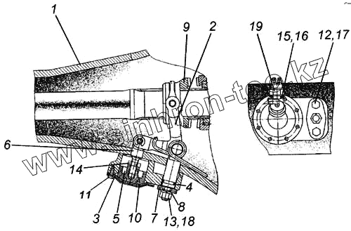 Каталог запасных частей к технике: Камский автозавод 65115. Механизм блокировки МКД среднего и заднего мостов