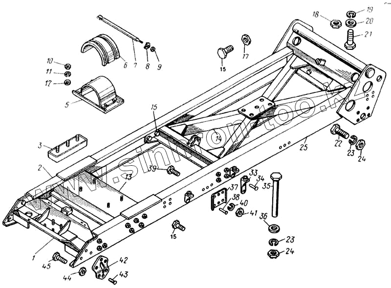 Каталог запасных частей к технике: Камский автозавод 65115. Надрамник опрокидывающего механизма (55111, 65115)