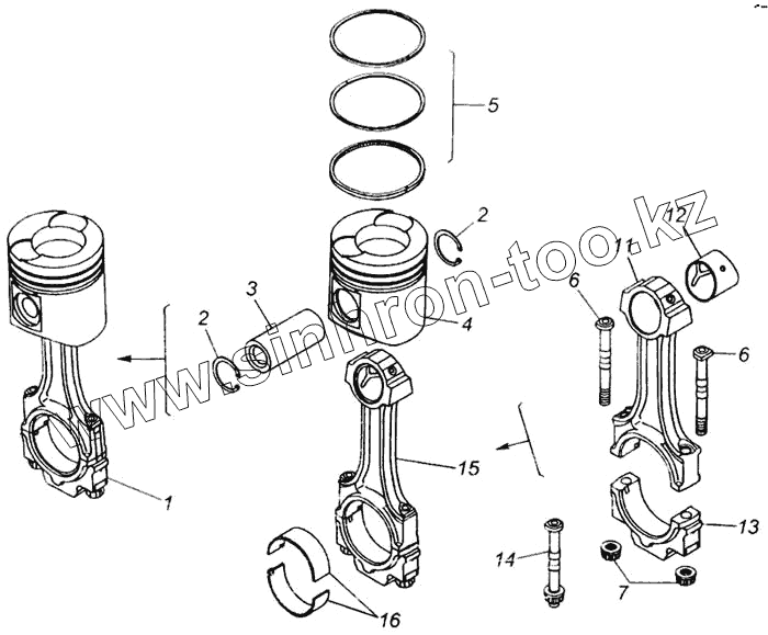 Каталог запасных частей к технике: Камский автозавод 65115. Поршень с шатуном и кольцами