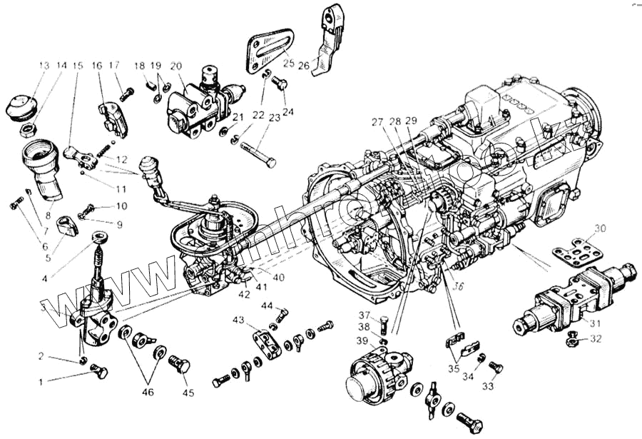 Каталог запасных частей к технике: Камский автозавод 65115. Привод управления механизмом переключения делителя передач