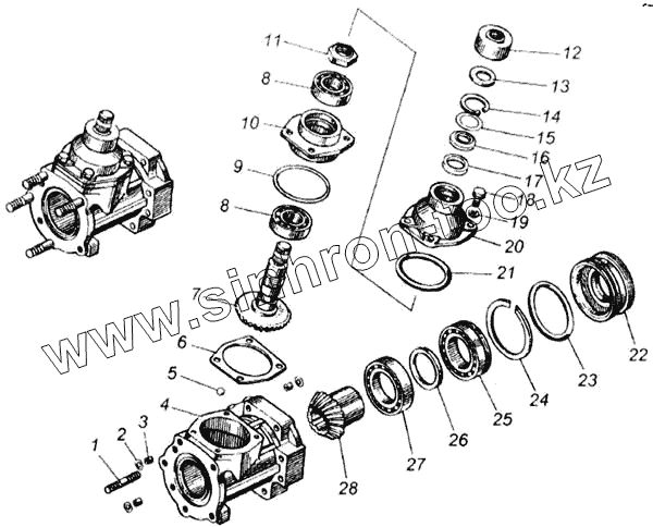 Каталог запасных частей к технике: Камский автозавод 65115. Редуктор угловой в сборе