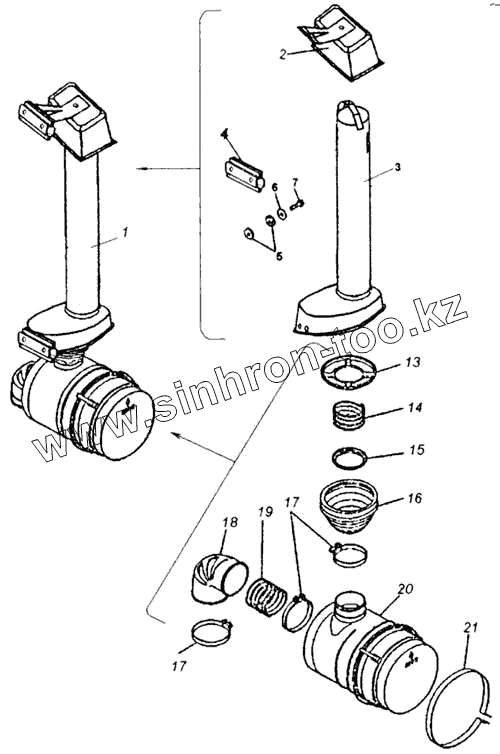 Каталог запасных частей к технике: Камский автозавод 65115. Система питания воздухом (55111, 65115)