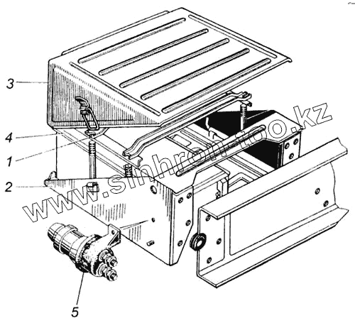 Каталог запасных частей к технике: Камский автозавод 65115. Установка аккумуляторных батарей и выключателя массы