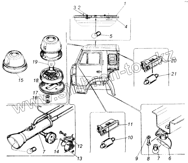 Каталог запасных частей к технике: Камский автозавод 65115. Установка приборов освещения на кабине