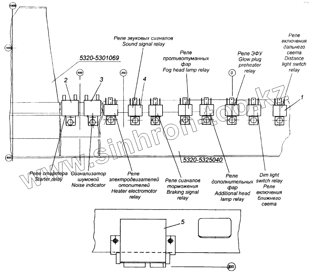 Каталог запасных частей к технике: Камский автозавод 65115. Установка реле