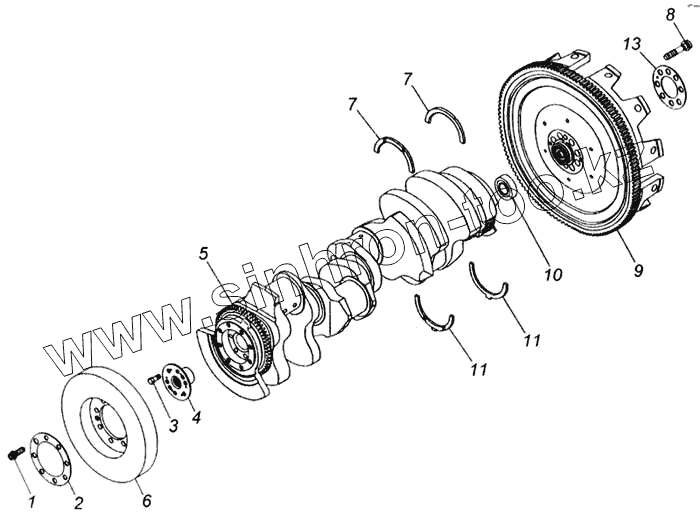 Каталог запасных частей к технике: Камский автозавод 65115. Вал коленчатый с маховиком
