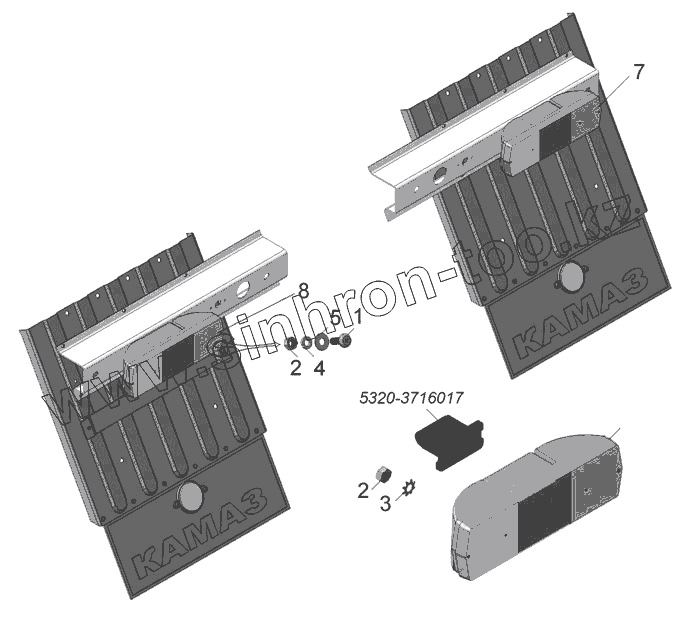 Каталог запасных частей к технике: Камский автозавод 65115. 65115-3716002-04 Установка задних фонарей