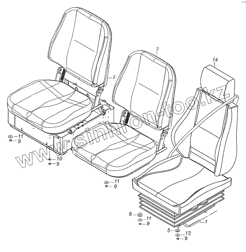 Каталог запасных частей к технике: Камский автозавод 65115, 65116 (Евро-4). 54115-5000120 Установка сидений