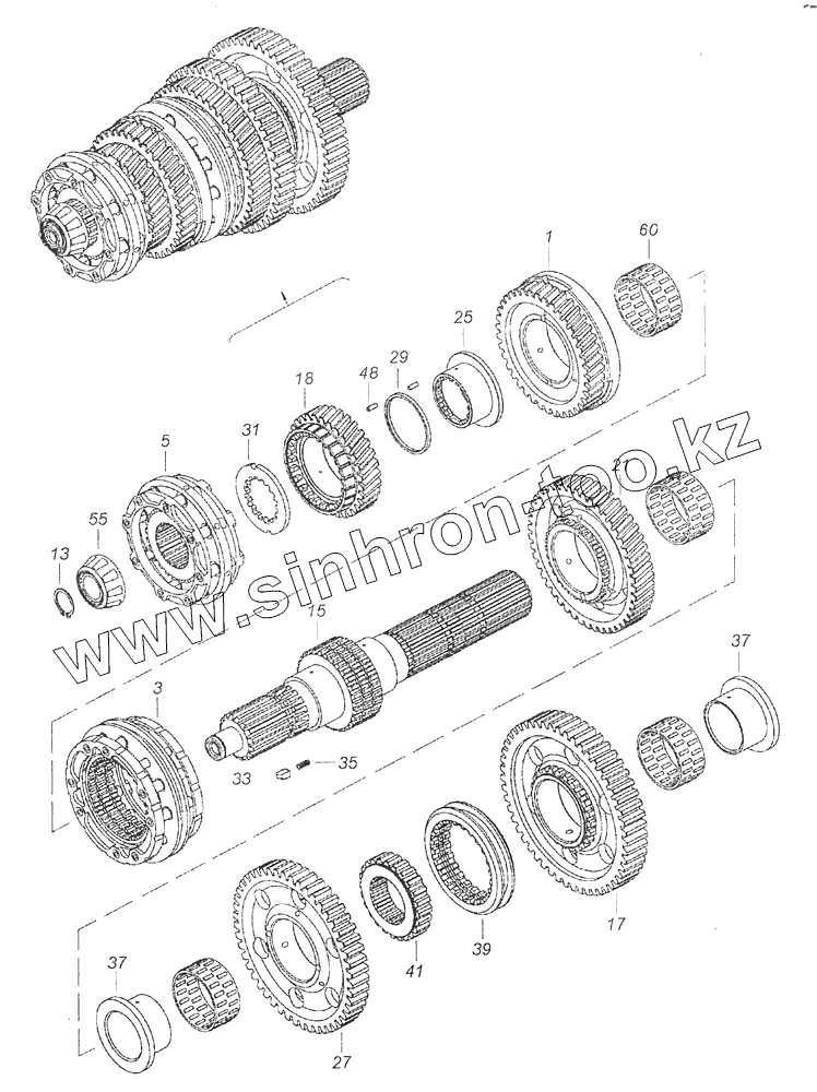 Каталог запасных частей к технике: Камский автозавод 65115 (Евро-3). 154.1701100 Вал вторичный