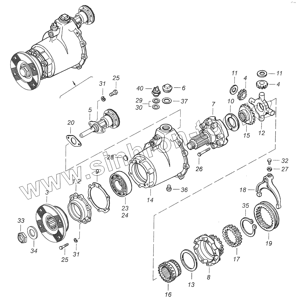 Муфта шестерни привода среднего моста межосевого дифференциала