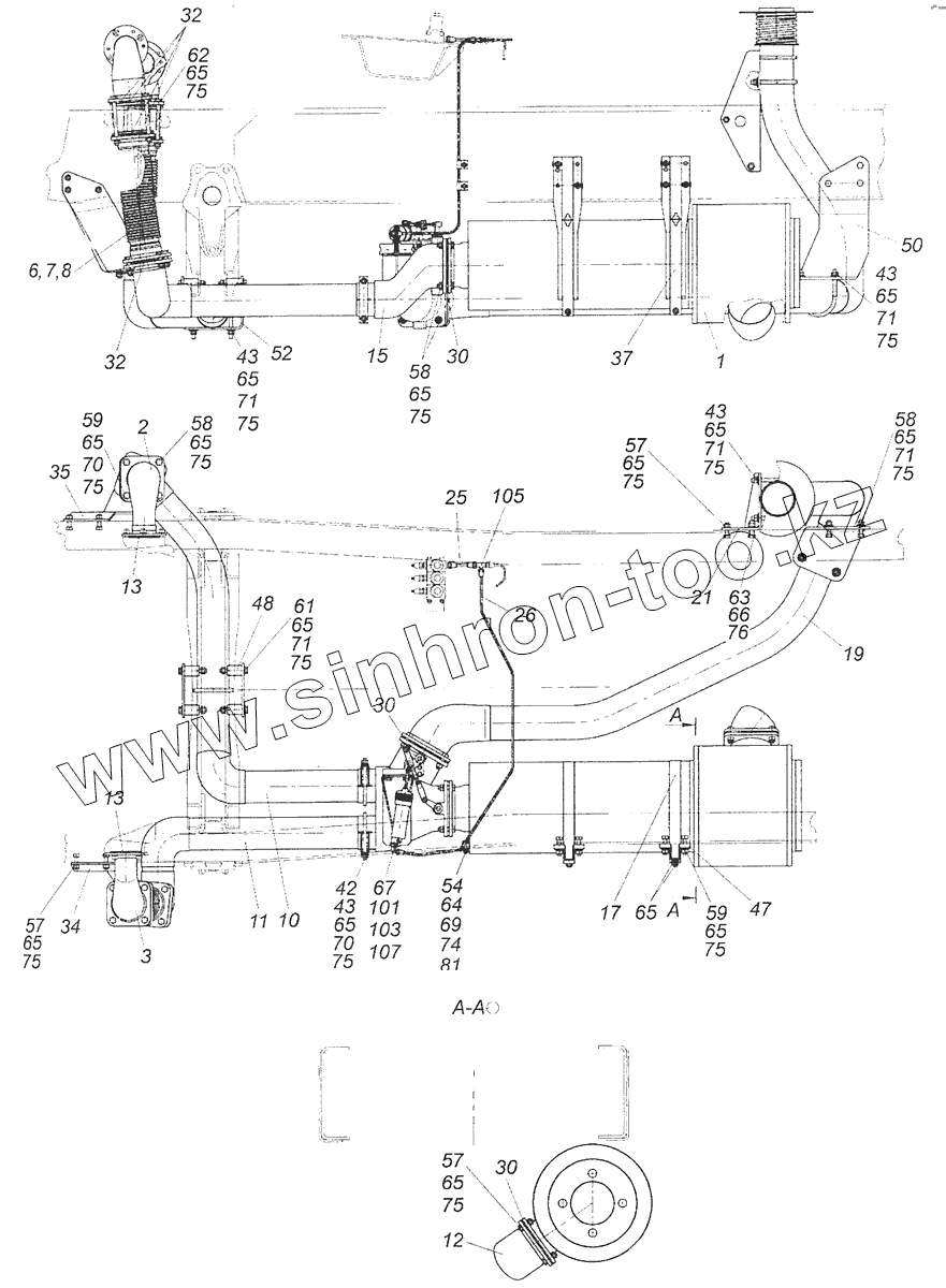 Каталог запасных частей к технике: Камский автозавод 65115 (Евро-3). 65115-1200007 Установка системы выпуска