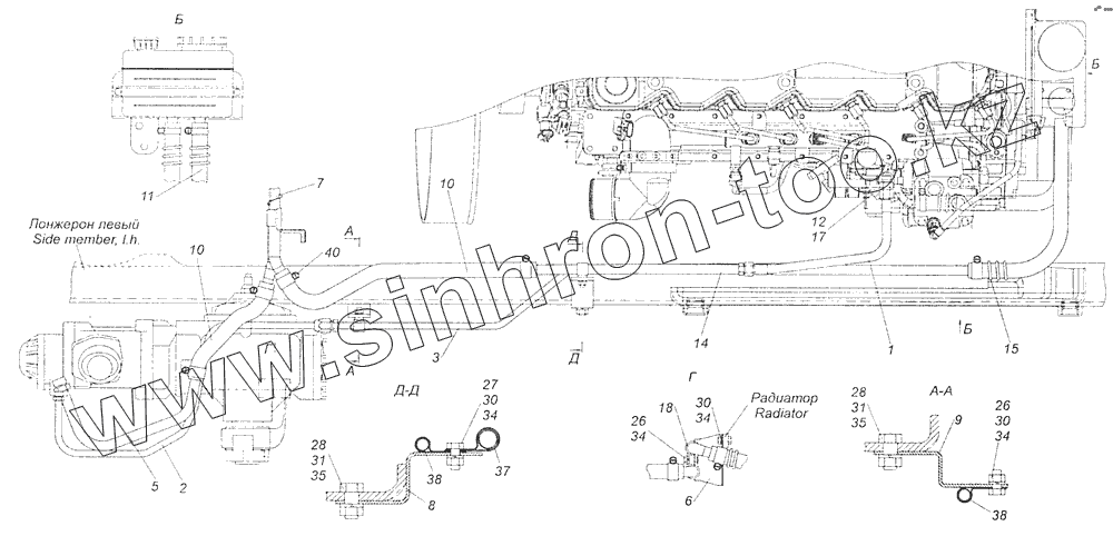 Каталог запасных частей к технике: Камский автозавод 65115 (Евро-3). 65115-3400018-19 Установка трубопроводов