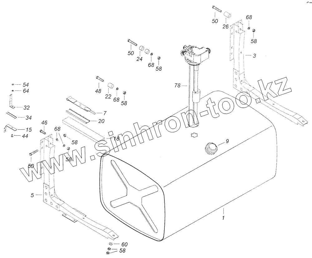 Каталог запасных частей к технике: Камский автозавод 65115 (Евро-3). 65116-1100030 Установка топливного бака