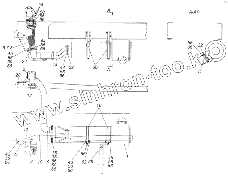 Каталог запасных частей к технике: Камский автозавод 65115 (Евро-3). 65116-1200002 Установка системы выпуска