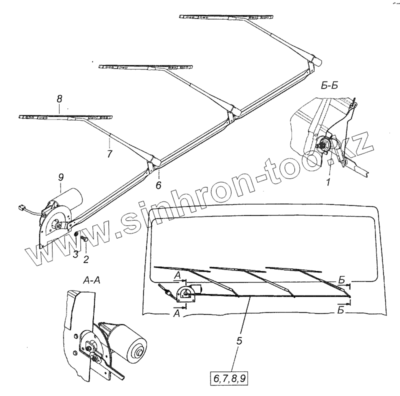 Каталог запасных частей к технике: Камский автозавод 65115 (Евро-3). 6520-5205001 Установка стеклоочистителя