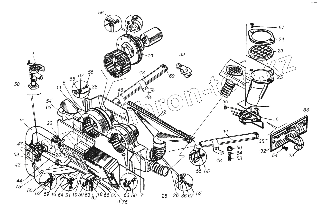 Каталог запасных частей к технике: Камский автозавод 65116. Элементы отопления и вентиляции кабины
