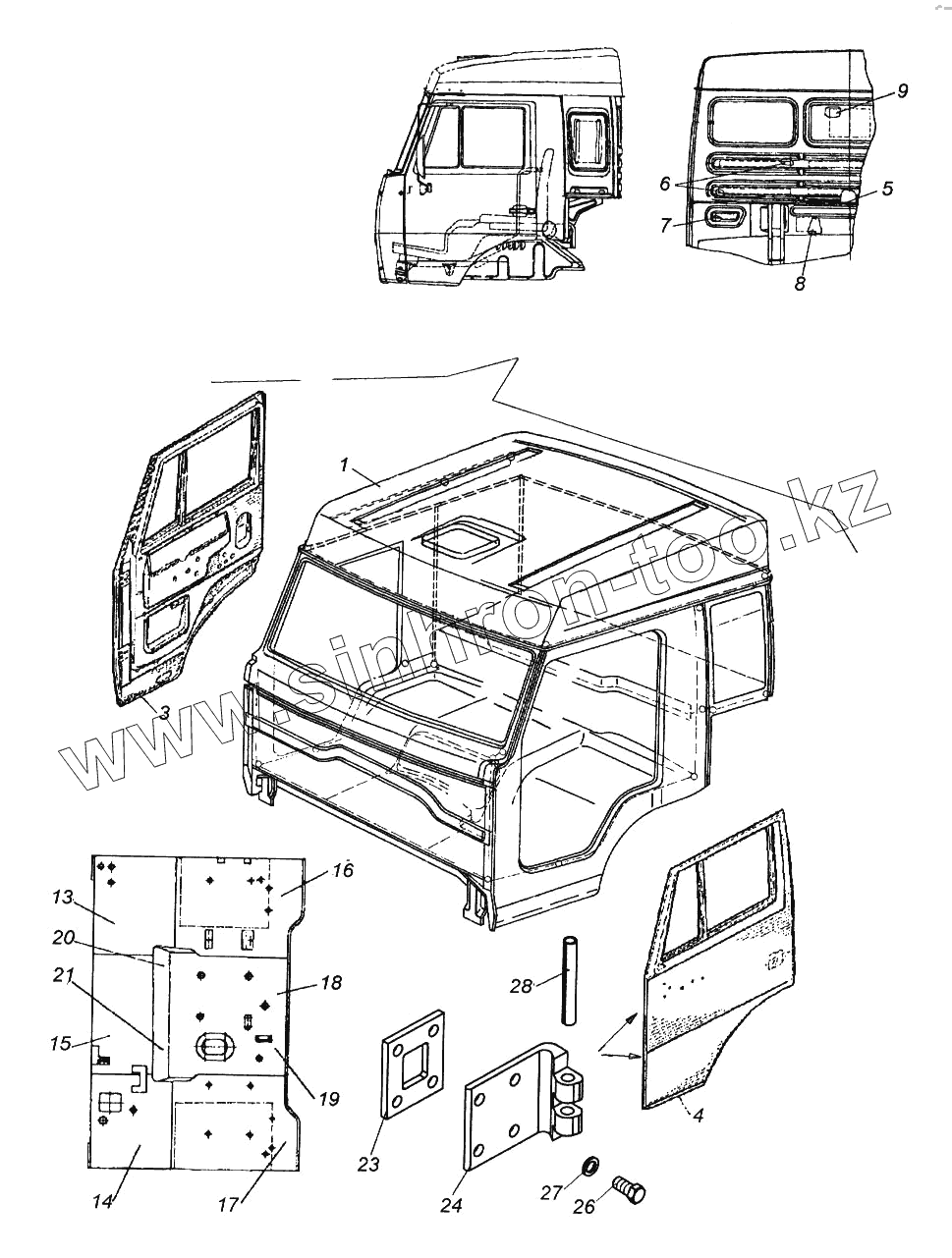 Каталог запасных частей к технике: Камский автозавод 65116. Кабина с дверями окрашенная
