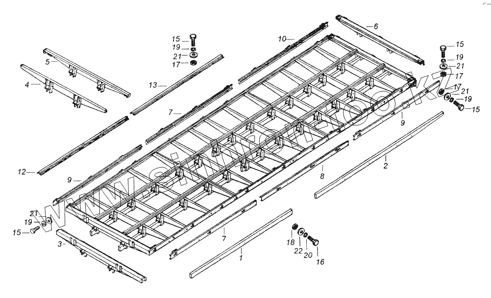 Каталог запасных частей к технике: Камский автозавод 65116. Каркас основания платформы