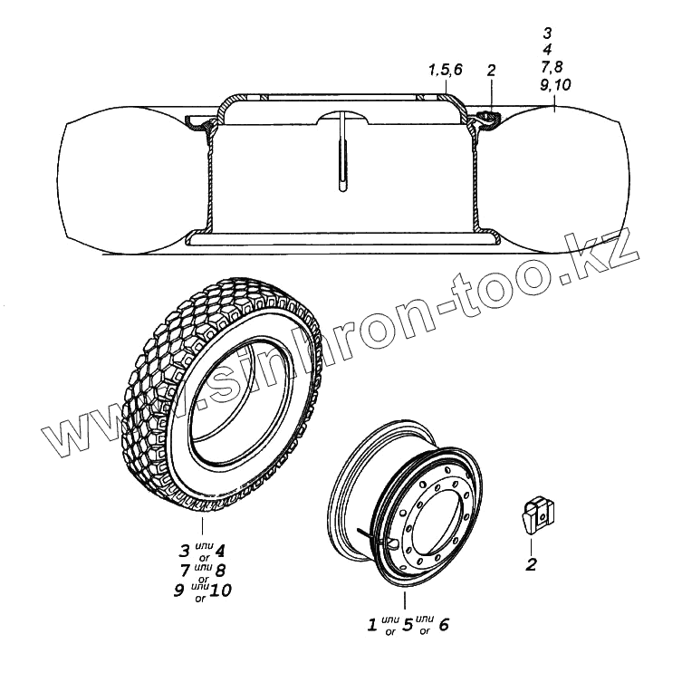 Каталог запасных частей к технике: Камский автозавод 65116. Колесо 7,5х20 с шиной