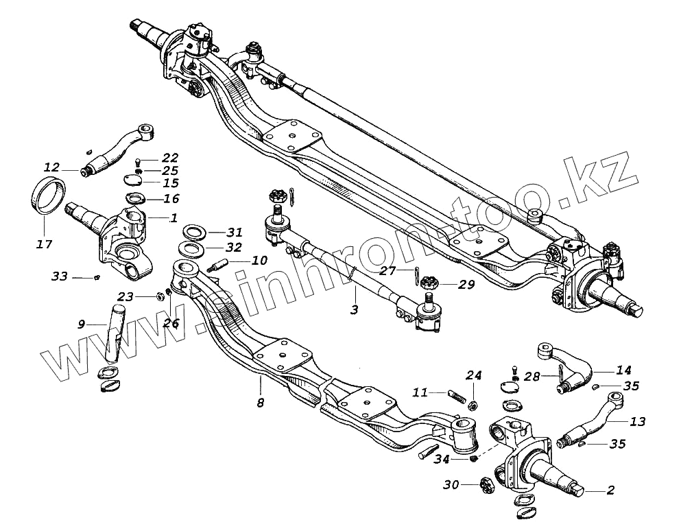 Каталог запасных частей к технике: Камский автозавод 65116. Ось передняя