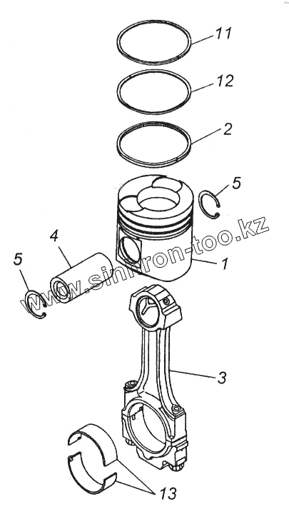 Каталог запасных частей к технике: Камский автозавод 65116. Поршень с шатуном и кольцами
