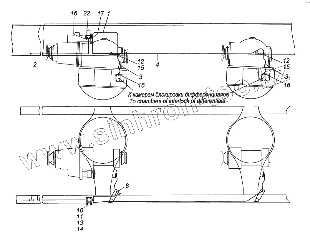 Каталог запасных частей к технике: Камский автозавод 65116. Привод блокировки межколесных дифференциалов