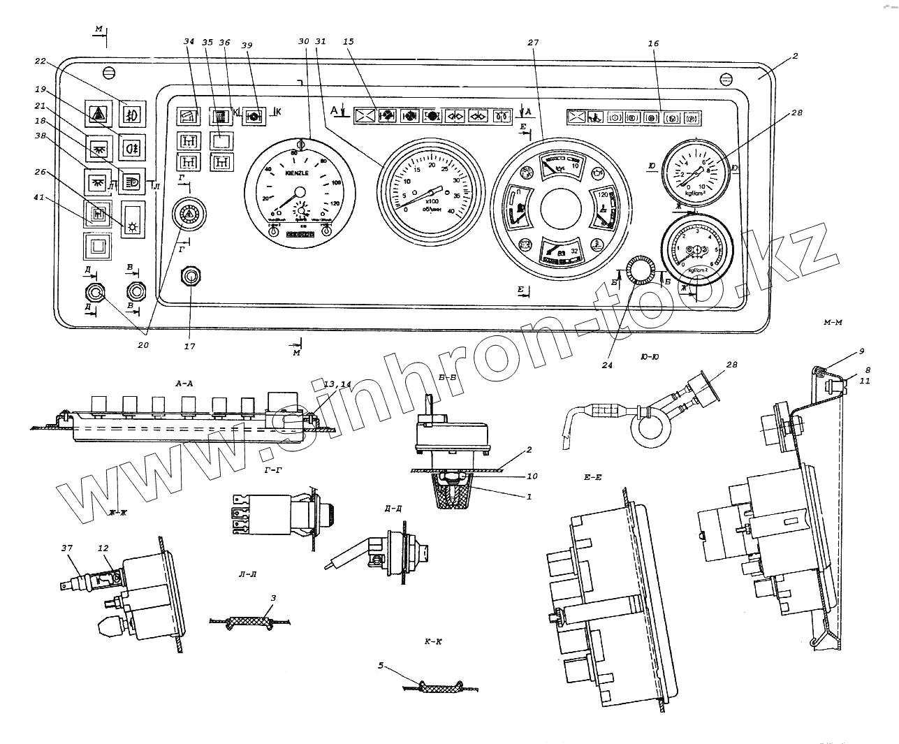 Каталог запасных частей к технике: Камский автозавод 65116. Щиток приборов