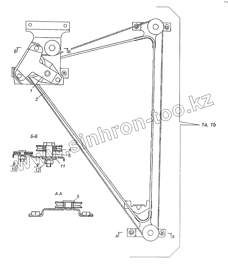 Каталог запасных частей к технике: Камский автозавод 65116. Стеклоподъемник двери левый в сборе