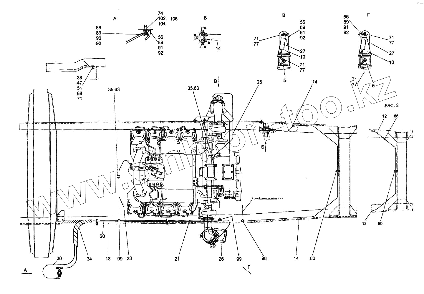 Каталог запасных частей к технике: Камский автозавод 65116. Тормоз вспомогательный и его привод