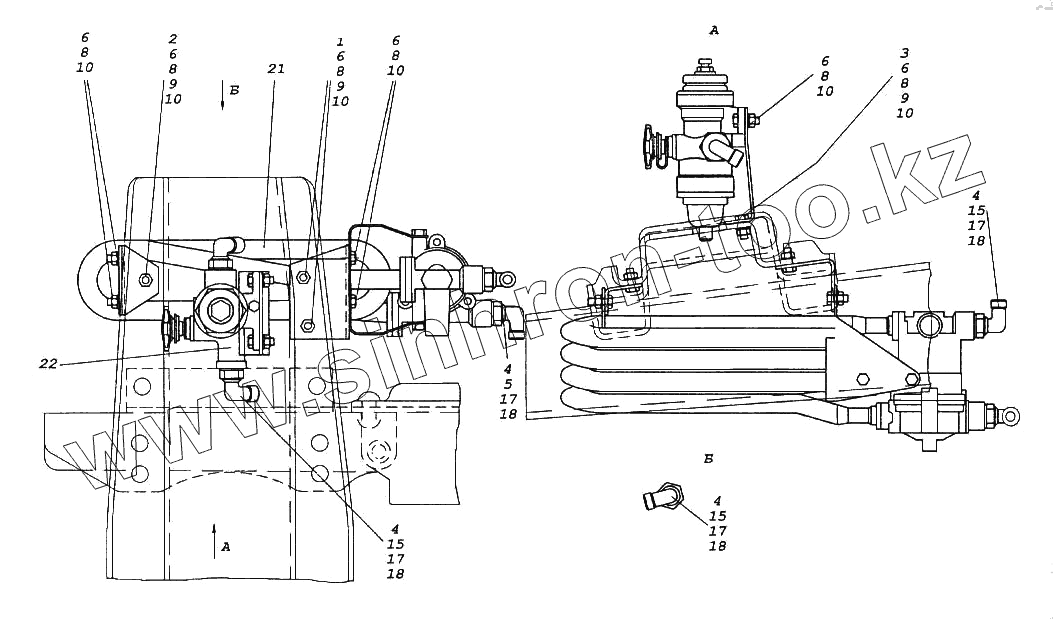 Каталог запасных частей к технике: Камский автозавод 65116. Установка блока подготовки воздуха