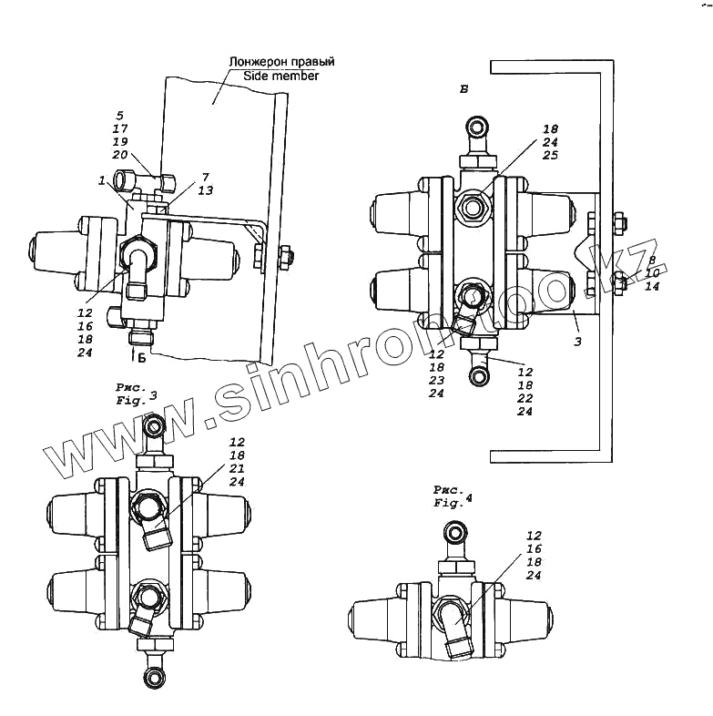 Каталог запасных частей к технике: Камский автозавод 65116. Установка четырехконтурного защитного клапана