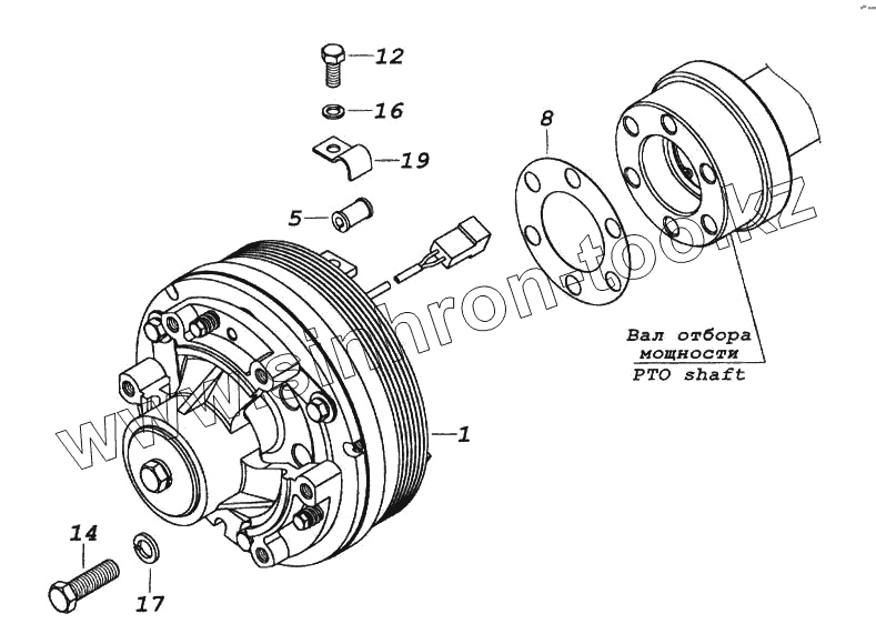 Каталог запасных частей к технике: Камский автозавод 65116. Установка электромагнитной муфты