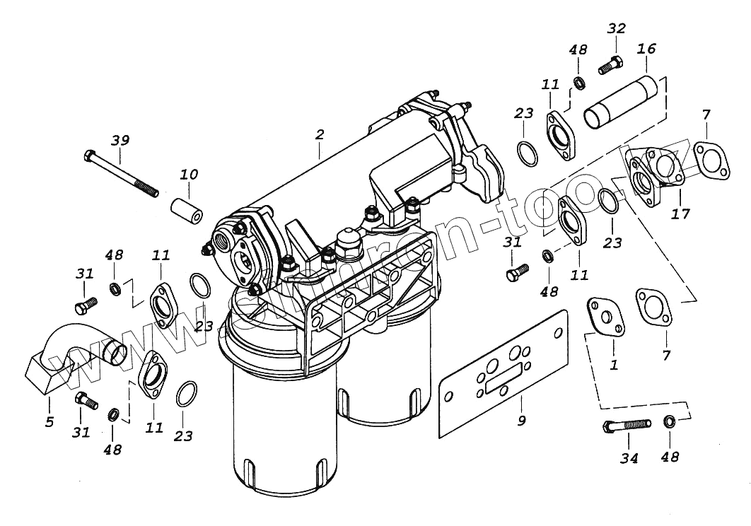 Каталог запасных частей к технике: Камский автозавод 65116. Установка фильтра и теплообменника