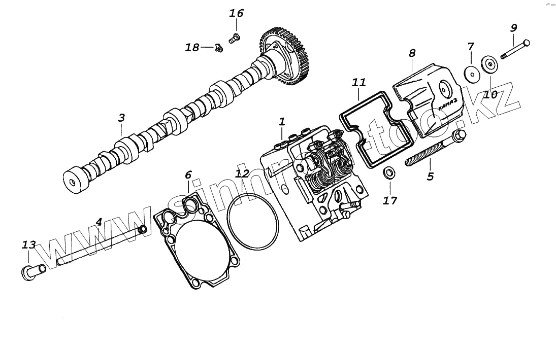 Каталог запасных частей к технике: Камский автозавод 65116. Установка газораспределительного механизма