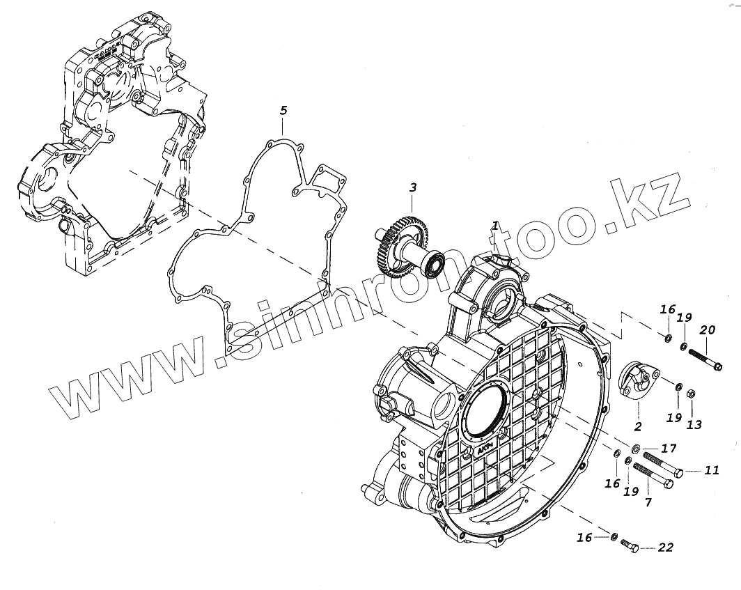 Каталог запасных частей к технике: Камский автозавод 65116. Установка картера маховика