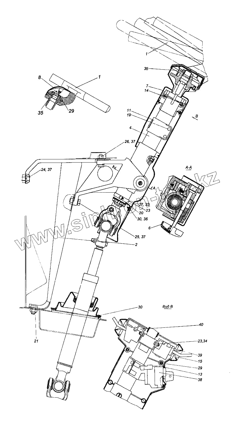 Каталог запасных частей к технике: Камский автозавод 65116. Установка колонки рулевого управления
